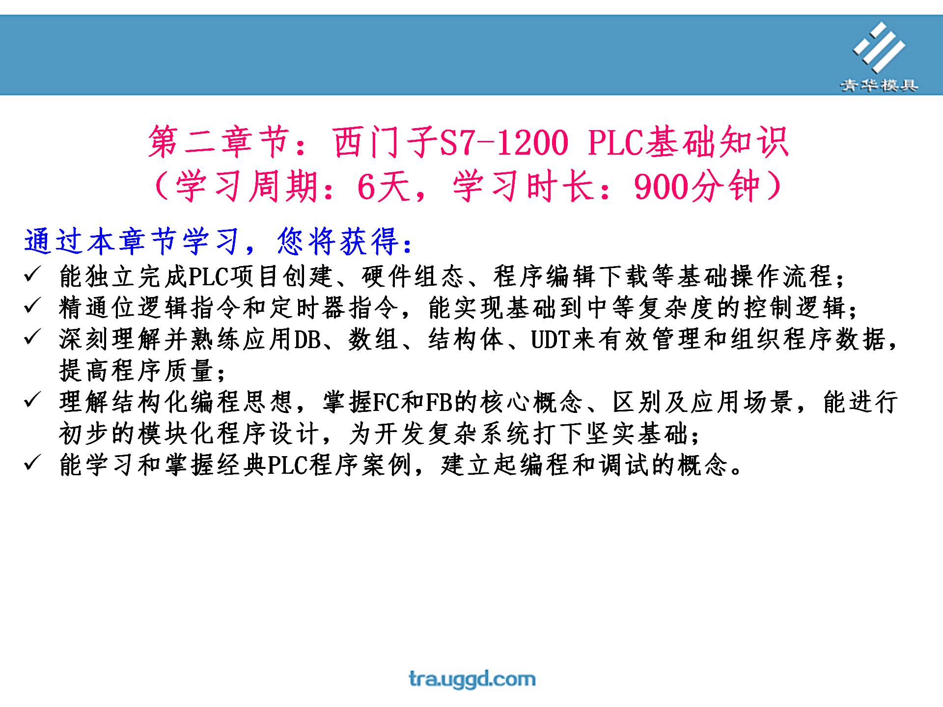 • 首页>课程大纲 >PLC编程>PLC编程第一阶段 >第二章节:西门子S7-1200 PLC 基础知识
